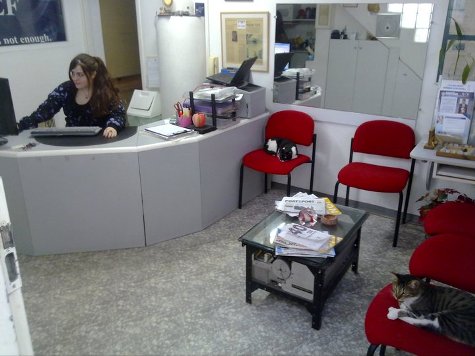● אם אתם אלרגיים לחתולים ותרצו להגיע למשרדי צ'יף, אנא הודיעו לנו לפני כן. נדאג לפנות לקראתכם את חדר הקבלה, כי בצ'יף מועסקים מספר חתולי רחוב מאומצים - שהפכו עם הזמן לאשפי היי טק מפונקים. הם מועסקים בעבודות של יחסי ציבור, קשרי לקוחות, שמירה, נוי והדברה. אם תהיתם, הם מעוקרים או מסורסים כדי למנוע נפוטיזם במקום העבודה. כרגיל, אנו ממשיכים להקדים את הטרנדים: מזמן כבר מגישים לאורחים שתייה באווירה שאפשר לפעמים להשוות לזו של בבתי הקפה האופנתיים שנפתחו (במיוחד החל מ-2012) וקיימים היום במזרח הרחוק, אירופה וצפון אמריקה. ב-Cat Cafesהרבים, אפשר לצפות בחתולי בית וללטף אותם.